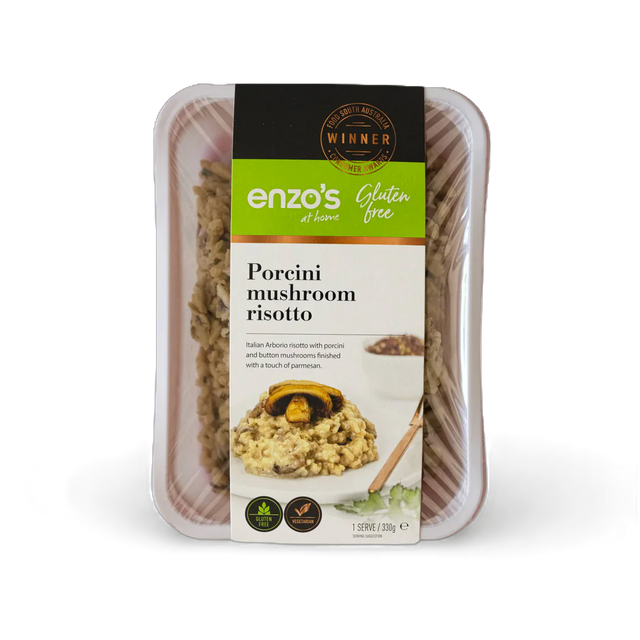 Italian Arborio risotto with porcini and button mushrooms finished with a touch of parmesan.