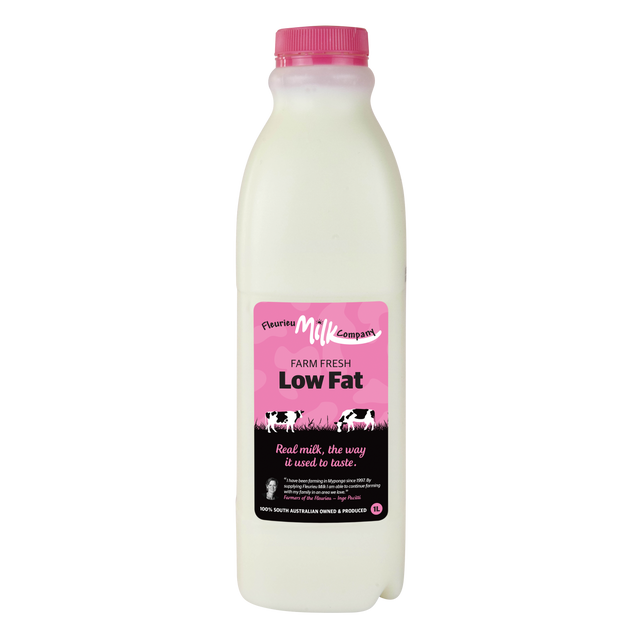 Fleurieu Farm Fresh Low Fat Milk contains less that 0.5g of fat whilst still maintaining the quality farm fresh milk flavour. Our Holstein Fresian stock is used to produce the Fleurieu Farm Fresh Range. It is real, unadulterated milk containing no permeates. These cows are milked within 500 metres of the factory which allows Fleurieu Milk to capitalise on a first class supply chain.